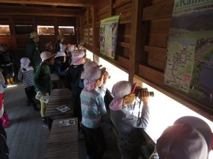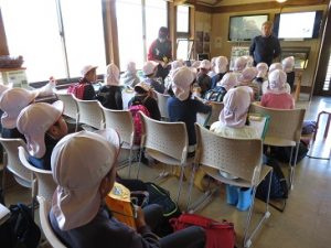 2班に分かれて、管理棟内では「コウノトリについての学習」