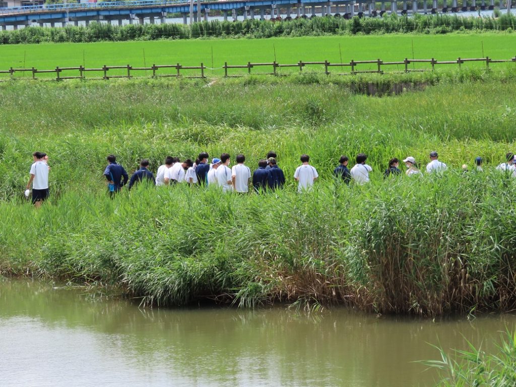 ハチゴロウの戸島湿地では、汽水域に生息する生きもの調査と外来種駆除を行いました。