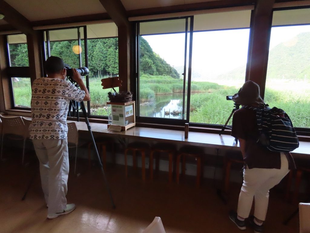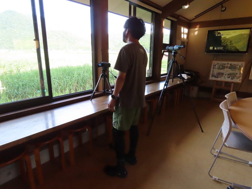 朝のすがすがしい景色の中で、コウノトリの観察をしていただきました。