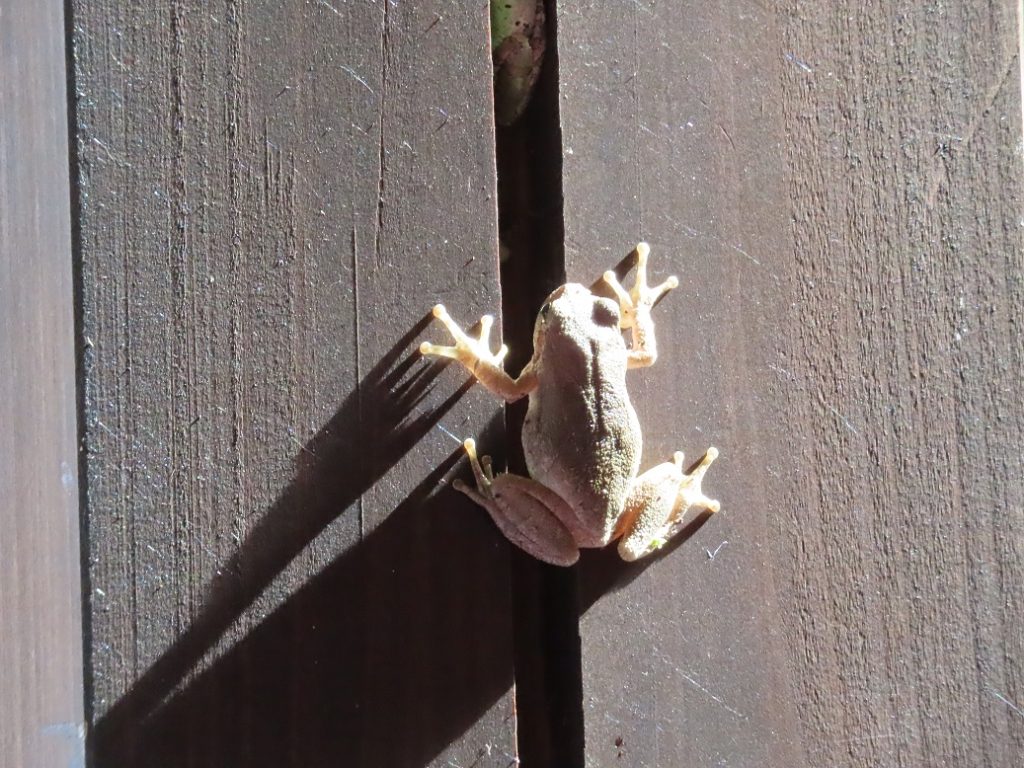 玄関の柱にいるアマガエルも顔を見せてくれました。