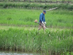 湿地では、子育ての邪魔をしないように湿地作業に励んでいます。