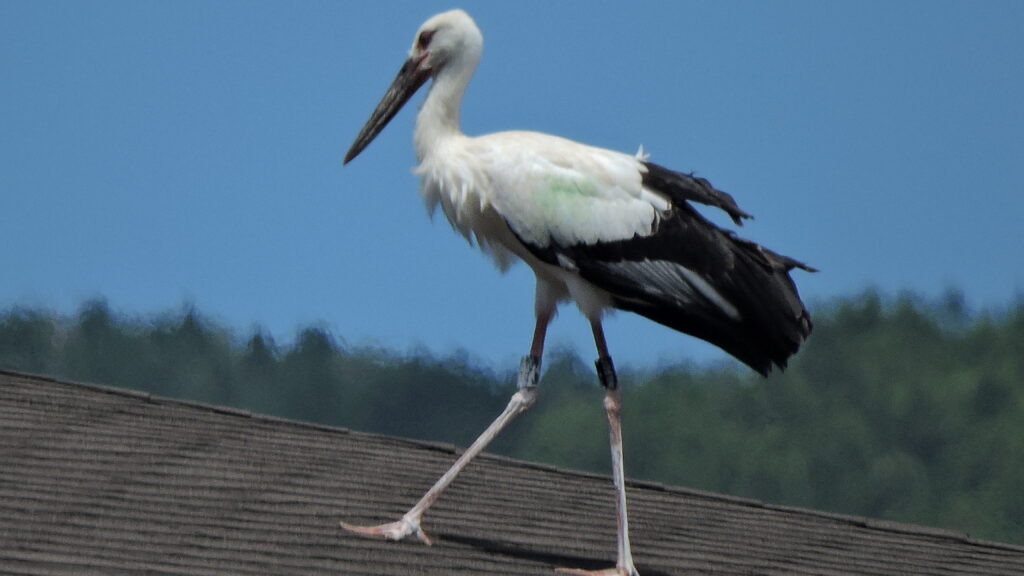 その数分後にJ0814が「楽々むら」の屋根にとまっているのを確認しました。