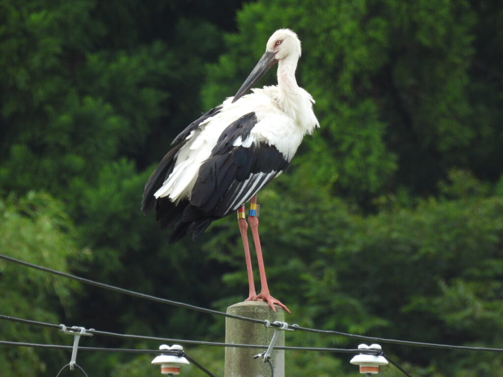 〇戸島湿地周辺では、朝からJ0211とJ0401が電柱で休んでいました。