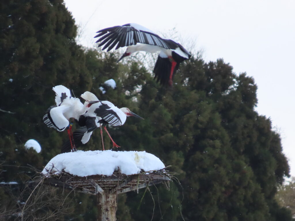 本日はJ0391♂が巣にとまっており、J0370♀が巣にちょっかいをかけている朝でした。
