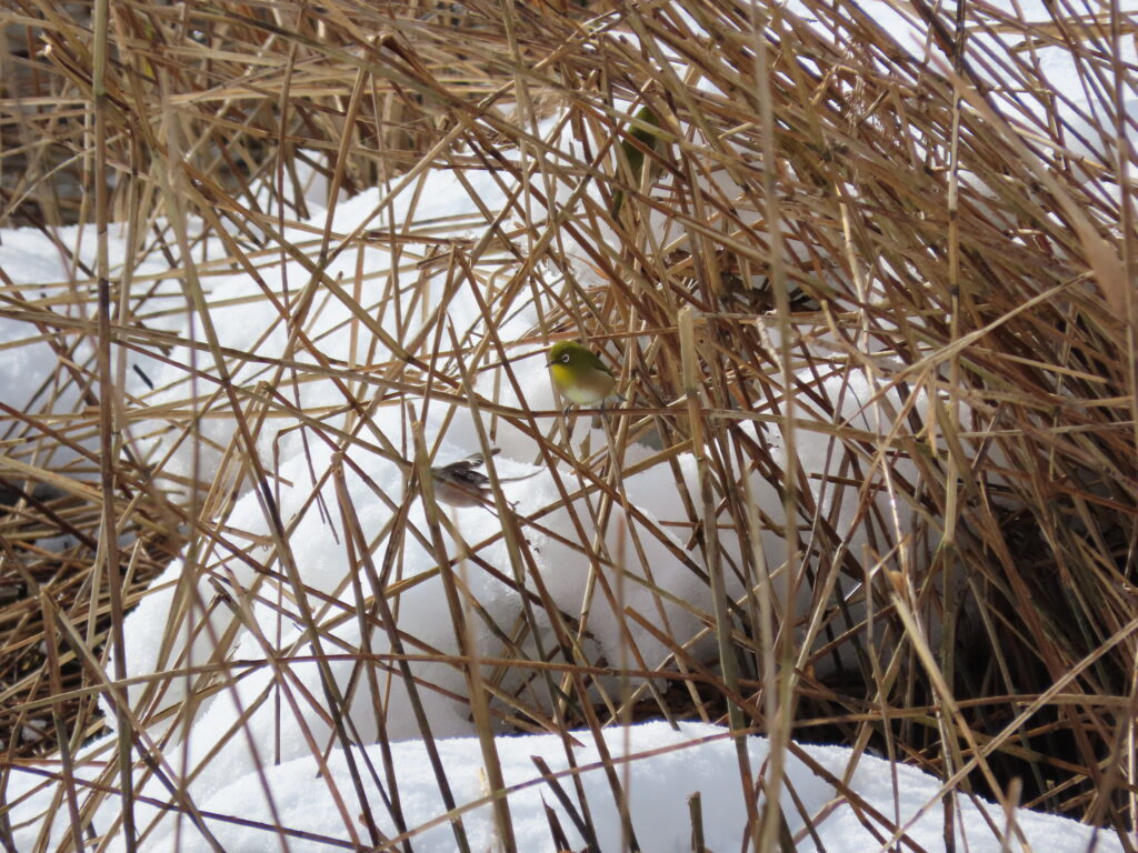 太陽が顔を出している時間には、エナガとメジロが汽水域のヨシ原に遊びにやってきたり、イソヒヨドリがエビを食べていたりという様子も見られました。