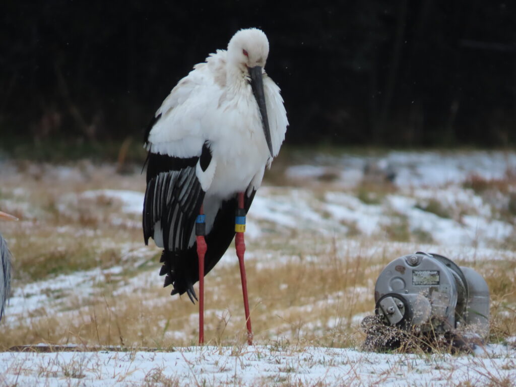 今朝もチラチラと雪が降っている中、戸島ペアが湿地で過ごしてくれています。