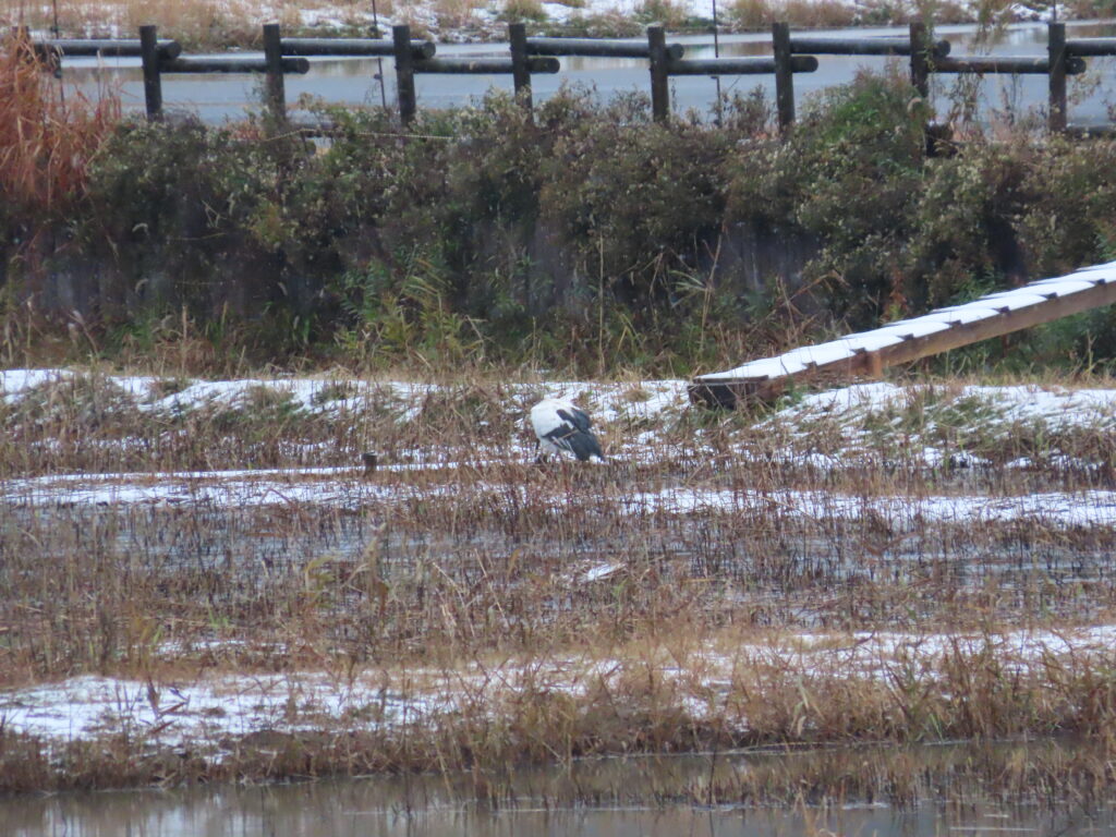 昨日からの寒波到来で、今朝も戸島湿地にはうっすらと雪が積もりました。