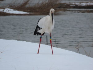 湿地では、戸島ペアのJ0391♂とJ0102♀が仲良く過ごしており、寒い中ですが元気に過ごしている姿を見せてくれています。