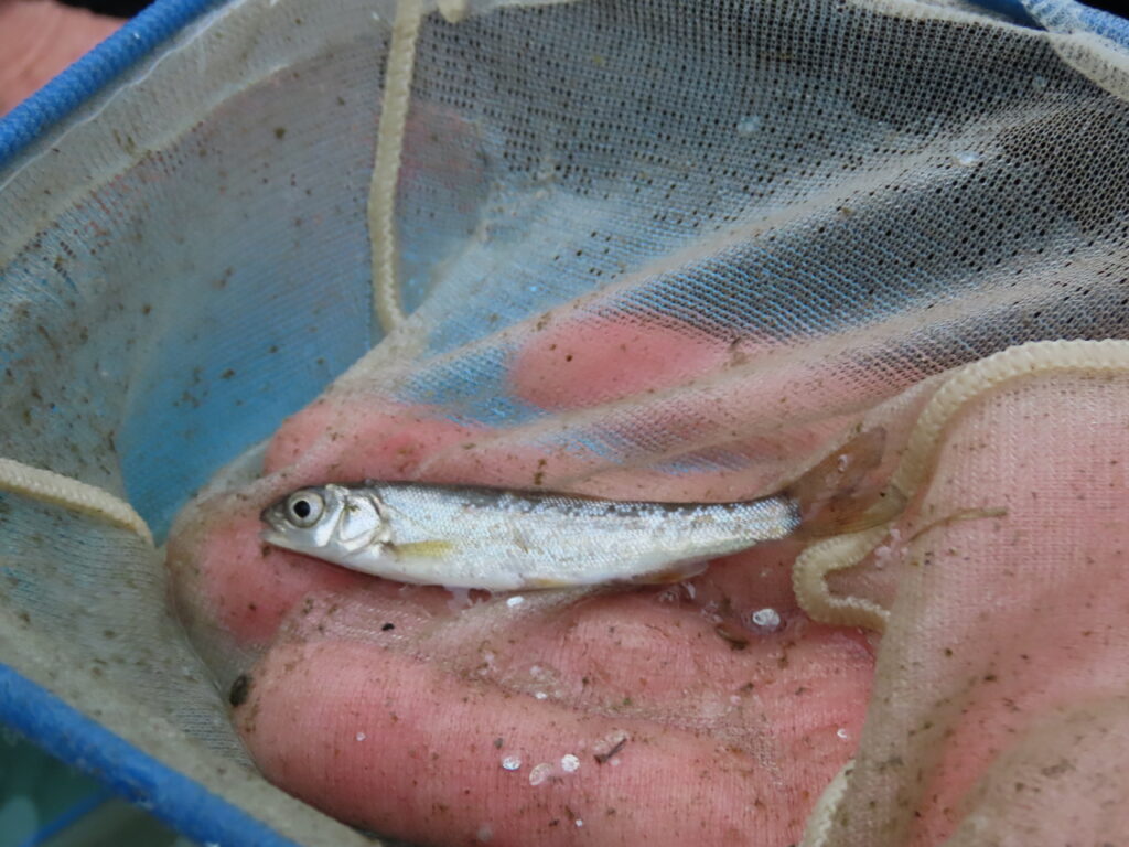 ①フナ大小 ②マハゼ ③アベハゼ ④ウグイ ⑤モツゴ ⑥モクズガニ ⑦ボラ ⑧スジエビ