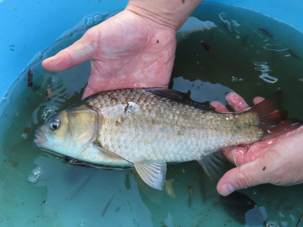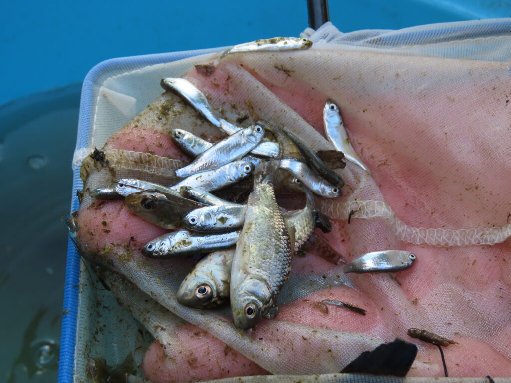 ①フナ大小 ②コイ ③ウグイ ④モツゴ ⑤マハゼ ⑥チチブ ⑦シモフリシマハゼ ⑧スジエビ