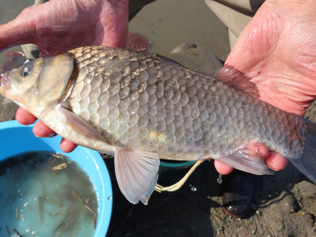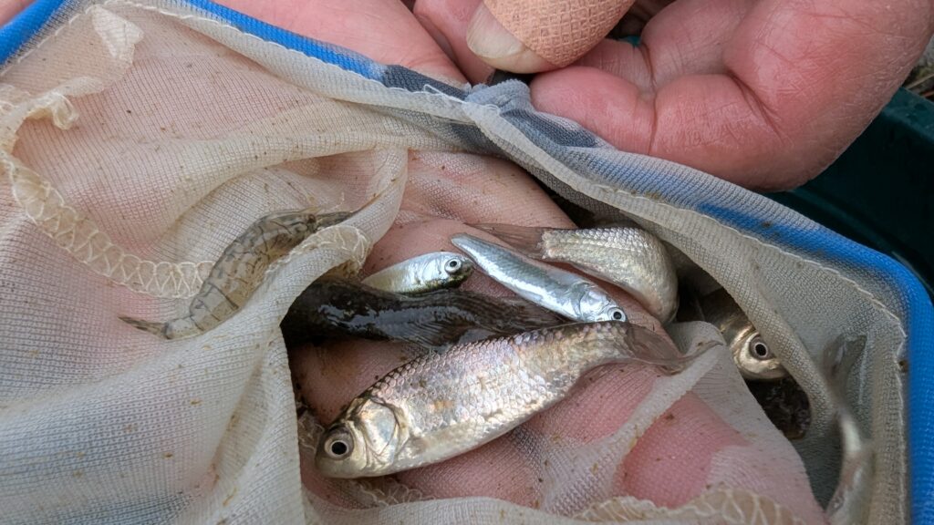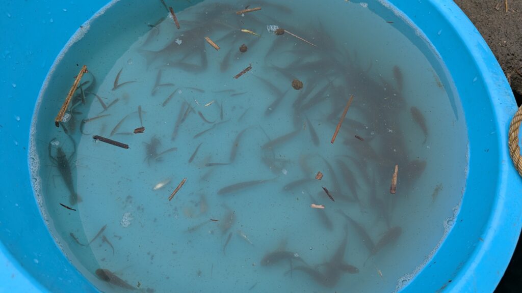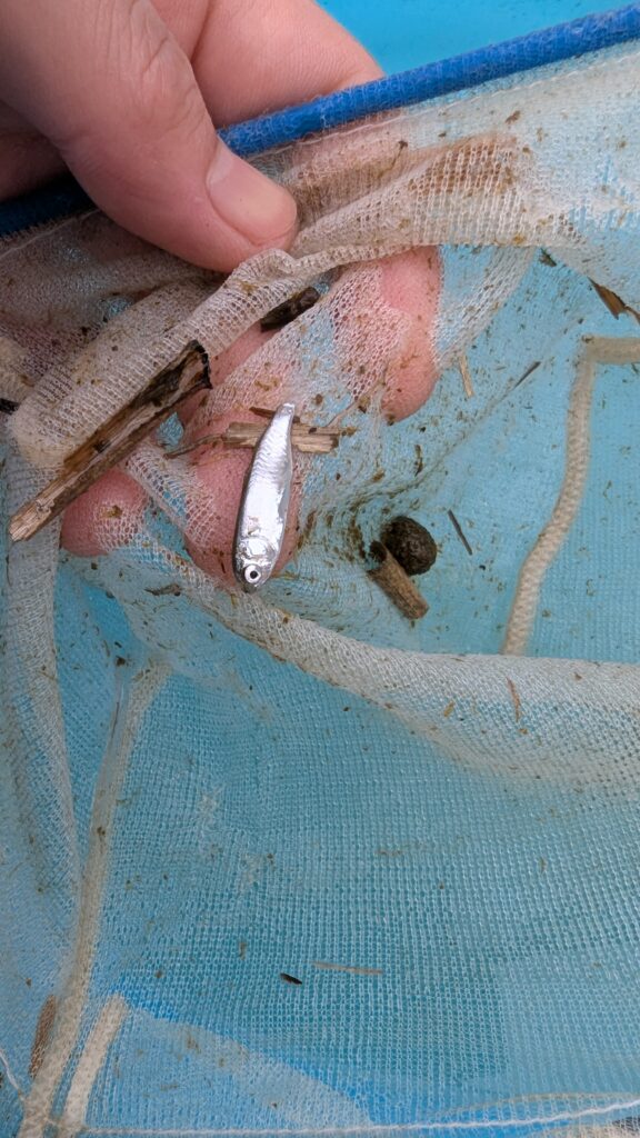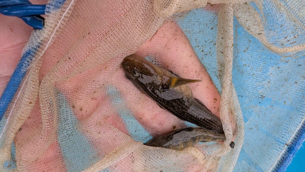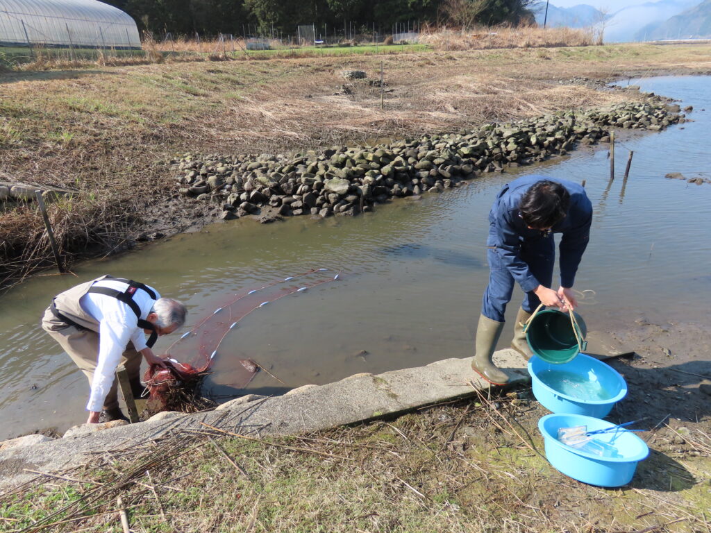 朝夕2回の調査を行い、①フナ ②シモフリシマハゼ ③マハゼ ④ビリンゴ ⑤ボラ ⑥ウグイ ⑦チチブ ⑧テナガエビ ⑨スジエビ ⑩モクズガニ
